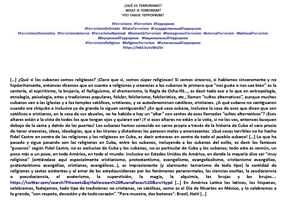 FERNANDO ANTONIO RUANO FAXAS.CUBA,CUBANOS,CASTRO,DICTADURAS,RELIGIONES,SANTERÍA,ESPIRITISMO,BRUJERÍA,ÑAÑIGUISMO,CHAMANISMO,REGLA DE OSHA-IFÁ,CATOLICISMO,CRISTIANISMO,VATICANO,TERROR