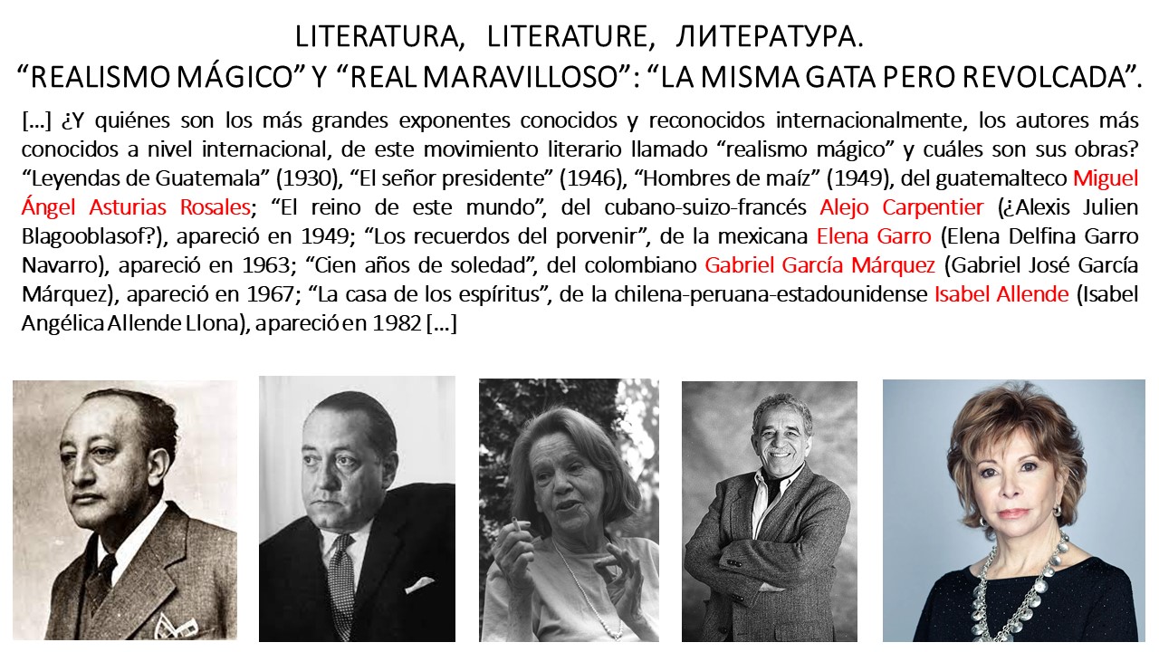 Fernando Antonio Ruano Faxas. LITERATURA, LITERATURE, ЛИТЕРАТУРА. Realismo mágico, real maravilloso, Miguel Ángel Asturias, Alejo Carpentier, Elena Garro, Gabriel García Márquez, Isabel Allende