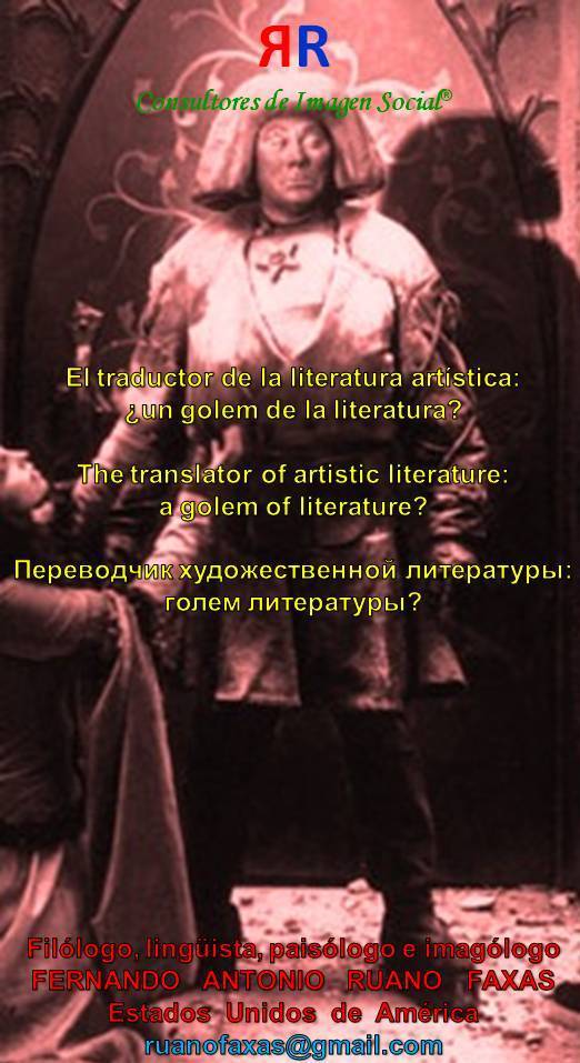 […] El escritor es un ser complejo, el traductor también; pero el escritor es un “ser complejo único”, y eso que ahí están los géneros y subgéneros de la literatura; pero el traductor es un “ser complejo mutante”, cambiante, es una máquina humana de adaptaciones, el traductor de literatura artística es como si fuera un golem talmúdico […] E inclusive así, siendo el traductor un artista que pinta las cosas “reajustadas” con palabras para las tan variadas culturas socio-dialectales, en la mayoría de los casos nadie los conoce, y hasta “la bola” de “universitarios” (?) e investigadores (?) que consultan mil informaciones ni ponen sus nombres en las bibliografías y notas de la inmensa mayoría de las porquerías que escriben hasta titularse (?), y en postgrado (?) todavía esto es peor […] ¿Pero qué ventajas podrían tener unos alumnos con unos profesores así, como la inmensa mayoría de los que tenemos? Como se dice en México: “Hijo de tigre, pintito”; como se dice en Cuba: “Hijo de majá sale pinto”. Con lo fácil y rápido, y por supuesto “respetuoso”, que sería poner el nombre de los traductores, del traductor, de esta gente maravillosa y decisiva en el desarrollo de la cultura universal. Pero todavía este asunto del empecinamiento de estas culturas estúpidas que quieren a fuerza mantener en el anonimato, en la inexistencia, en la irrelevancia, a los traductores se hace más evidente cuando queda claro, cuando aparece, en los textos consultados, en los libros, revistas, fichas bibliográficas, en Internet, etc., el nombre del traductor, y en primera página, ahí clarísimo, es un nombre que salta a la vista, a menos que se sea ciego, o también inculto o atrasado o hasta pendejo, y no lo ponen, no lo registran, en sus “diz que” investigaciones, en sus “diz que” trabajos científicos y académicos. ¿Qué es eso? ¿Dejadez? ¿Olvido? ¿Taradez? No, en el mundo intelectual y civilizado “de verdad” eso se llama estupidez, ignorancia, animalidad intelectual. Ya los tiempos han cambiado, y mucho, como para no estar llamando a las cosas por su nombre, como para estar, al decir de los mexicanos, “dando atole con el dedo”, o como dice mi suegra: “es bueno el ‘encaje’ pero que no sea tan ancho” […] También podríamos decir que eso se llama “educación en América”, por eso estamos como estamos, ¡y de futuro luminoso nada!, al contrario, para atrás y para atrás y para atrás, como los cangrejos […] Para conocer qué es un golem también usted puede leer la buenísima novela Der Golem, del austríaco Gustav Meynrick, escrita en el año 1915, o vea el film o película El Golem, creada en 1920 por el director Paul Wegener http://www.youtube.com/watch?v=5zag79w8eIQ&feature=related […] Esas películas de antes siguen siendo mis favoritas: ¡qué maravillas de la imaginación y de la creación artística y científico-técnica! Las de ahora también son buenas, y ahí está, por ejemplo, Avatar http://es.wikipedia.org/wiki/Avatar_(pel%C3%ADcula) , http://www.youtube.com/watch?v=_n2fPkpsjMo , que ha roto todo récord imaginable de taquilla, la película más vista en la historia mundial del cine, todo el mundo quiere ver esa película, niños y adultos, en todo el planeta, en todos los países; pero aquellas películas de antes se hicieron cuando no existían los adelantos de ahora, ahí había que ser mago para hacer todas esas cosas maravillosas y geniales, y sin recursos, y con tantos tabúes y prohibiciones, con una Iglesia tan perseguidora, inquisitoria y criticona. ¡Y cómo le ha jodido al clero mañoso y corrupto todas estas cosas, todas estas películas, videos (ahí está YouTube), libros, etc., de magia, de brujería, de esoterismo, de santería, de alquimia, de vudú, de sincretismos de todo tipo…! Claro, porque con todas estas películas se les sigue cayendo cada vez más su show barato y fraudulento. Todos estos temas de magia, esoterismo, brujería, alquimia, espiritismo, vudú, candomblé, chamanismo, nahualismo o nagualismo, etc., siempre les ha fascinado a todos, en todas las culturas, en todos los tiempos, como he comentado ya en mis textos https://ruanofaxas.wordpress.com/article/las-creencias-las-religiones-los-cultos-19j6x763f3uf8-41-2/ […] http://knol.google.com/k/an%C3%B3nimo/las-creencias-las-religiones-los-cultos/19j6x763f3uf8/90# […] https://ruanofaxas.wordpress.com/2012/04/07/si-los-religiosos-catolicos-o-cristianos-no-saben-practicamente-nada-de-catolicismo-o-cristianismo-si-no-saben-nada-de-las-divisiones-del-catolicismo-de-las-sectas-si-no-tienen-ni-idea-sensata/ […] https://ruanofaxas.wordpress.com/article/pobre-haiti-pobre-pueblo-haitiano-los-19j6x763f3uf8-161-2/ […] https://ruanofaxas.wordpress.com/2011/11/25/pobre-haiti-pobre-pueblo-haitiano-los-primeros-y-los-ultimos-ni-los-dioses-quieren-a-haiti-y-el-manco-mackandal/ […] https://ruanofaxas.wordpress.com/2012/05/28/mexico-arte-indo-cristiano-tequitqui-mexico-indo-christian-art-tequitqui-%D0%BC%D0%B5%D0%BA%D1%81%D0%B8%D0%BA%D0%B0-%D0%B8%D0%BD%D0%B4%D0%B8%D0%B9%D1%81%D0%BA%D0%BE-%D1%85%D1%80%D0%B8%D1%81/ […] https://ruanofaxas.wordpress.com/2012/03/27/benedicto-xvi-en-cuba-que-fidel-castro-y-raul-castro-no-creen-en-religiones-en-cultos-alternativos-en-dios-en-la-virgen-de-la-caridad-del-cobre-en-el-catolicismo-en-el-cr/ […] https://ruanofaxas.wordpress.com/article/abramos-los-ojos-de-una-vez-es-19j6x763f3uf8-183-2/ […]