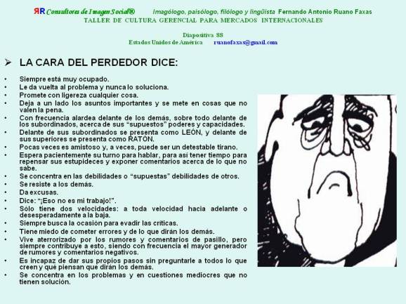 […] Ya he tratado los problemas relacionados con el miedo, con el temor, con el terror, en https://ruanofaxas.wordpress.com/article/abordando-el-tema-del-miedo-el-temor-y-19j6x763f3uf8-140-2/ , http://knol.google.com/k/fernando-antonio-ruano-faxas/abordando-el-tema-del-miedo-el-temor-y/19j6x763f3uf8/140# […] Ya he tratado los temas del miedo, del terror, del pánico, en las empresas, en los trabajos, en esas “empresas disfuncionales”, con esos “jefes disfuncionales” https://ruanofaxas.wordpress.com/2012/03/10/horrible-bosses-your-bosses-are-normal-or-abnormal/ , https://ruanofaxas.wordpress.com/2012/08/18/how-rascals-bosses-manipulate-what-are-their-strategies-imagology-of-the-rascals-bosses-and-imagology-of-the-fools-workers-como-manipulan-los-jefes-sinverguenzas-cuales-son-sus-estrat/ , https://ruanofaxas.wordpress.com/article/cuidado-no-nos-confundamos-que-una-cosa-19j6x763f3uf8-184/ , https://ruanofaxas.wordpress.com/2012/06/15/globalization-and-bilingualism-globalizacion-y-bilinguismo-globalizacao-e-bilinguismo-%D0%B3%D0%BB%D0%BE%D0%B1%D0%B0%D0%BB%D0%B8%D0%B7%D0%B0%D1%86%D0%B8%D1%8F-%D0%B8-%D0%B1%D0%B8%D0%BB%D0%B8%D0%BD/ , https://ruanofaxas.wordpress.com/2012/05/01/hacia-la-calidad-integral-sin-fronteras-to-the-integral-quality-without-borders-trabajo-en-equipo-teamwork-trabalho-em-equipe-%D1%80%D0%B0%D0%B1%D0%BE%D1%82%D0%B0-%D0%B2-%D0%BA%D0%BE%D0%BC%D0%B0/ […] En la inmensa mayoría de las empresas, de las instituciones, de los trabajos, lo que existe es una CADENA DE TERROR, miedo, pánico, de todos hacia todos, impera la desconfianza en absolutamente todos los sentidos. Nunca sabemos cuándo “el amigo” se transformará en “enemigo”, cuándo el “aliado” se convertirá en “traidor”. Y si esto es en el “Primer Mundo”, ¡imaginen qué no pasará en el “Segundo Mundo”, en el “Tercer Mundo”, en el “Cuarto Mundo” y en el “Quinto Mundo”!, porque no creo que a alguien se le ocurra aquí pensar que esa vida que llevan “ciertos pueblos” de América Latina es Tercer Mundo. ¿Tercer Mundo con esos baños diarios de sangre, con esos sacrificios de inocentes de todas las edades? […] claro, aquí estamos destacando el miedo, el pánico, que tienen “los de abajo” con respecto a “los de arriba”. Y aquí destacamos, aclaramos, recordamos, que hay muchos y muchas que se creen “de arriba”, pero en realidad son unos “gatos”, unas “gatas”, es decir unos “sirvientes con categoría de jefes” […]