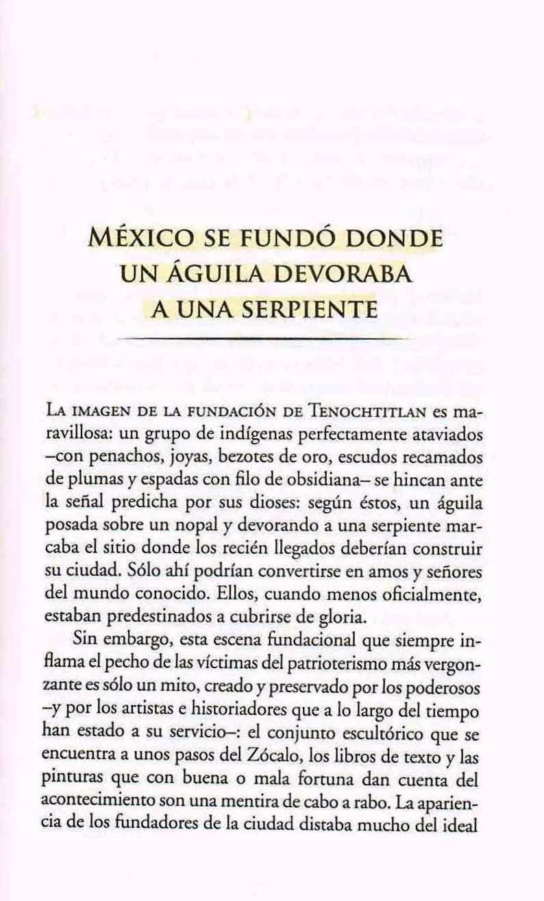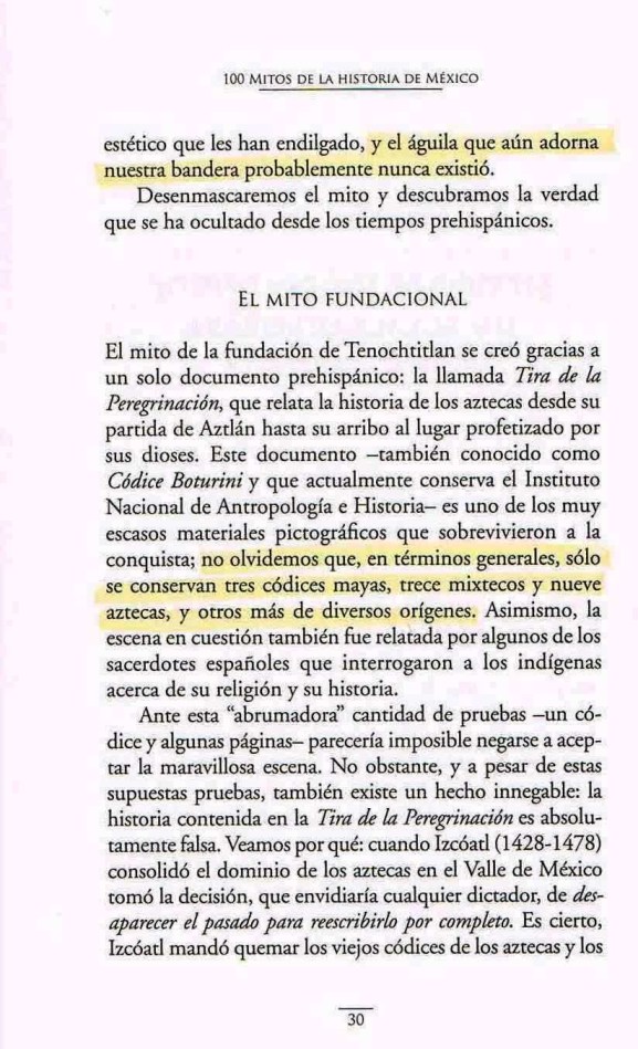 […] Hasta ahora hemos dado una explicación más o menos tradicional (?), habitual, común, de la historia del escudo mexicano y la fundación de México […] Pero, realmente, todo esto es uno de los tantos mitos acerca de México. Como dice Francisco Martín Moreno en su libro 100 mitos de la historia de México […] “el águila que aún adorna nuestra bandera probablemente nunca existió […] No hubo ningún águila devorando a ninguna serpiente [y los aztecas, en comparación con los otros grupos humanos de la región en aquellos momentos de ‘la fundación’] eran los más pobres y bárbaros” […] Y, repito, lo peor de todo esto es que, inclusive los alumnos de postgrado en México, mexicanos, en el mejor de los casos, hablan del ya famoso y tradicional mito de la fundación de México […] porque, en el peor de los casos, acerca de todo esto no tienen ni la menor idea funcional […] todo lo cual se relaciona con lo que ya hemos comentado en https://ruanofaxas.wordpress.com/article/analfabetismo-funcional-analfabetismo-19j6x763f3uf8-6-2/ , https://ruanofaxas.wordpress.com/article/toquemos-el-tema-de-la-lectura-lecturas-19j6x763f3uf8-158-2/ , etc. […] y todo esto en el contexto de https://ruanofaxas.wordpress.com/article/la-educacion-y-la-instruccion-en-mexico-19j6x763f3uf8-165-2/ […]