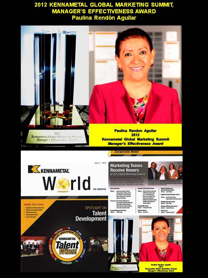 PAULINA RENDÓN AGUILAR http://www.linkedin.com/pub/paulina-rendon-aguilar/34/98/b12 , https://twitter.com/PaulinaRendonA @PaulinaRendonA , 2012 KENNAMETAL GLOBAL MARKETING SUMMIT, MANAGER’S EFFECTIVENESS AWARD #KGMS #kennametal