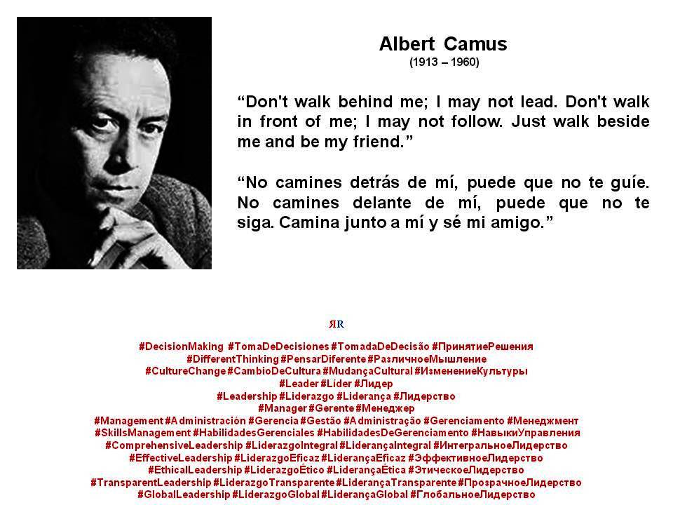 “No camines detrás de mí, puede que no te guíe. No camines delante de mí, puede que no te siga. Camina junto a mí y sé mi amigo.”