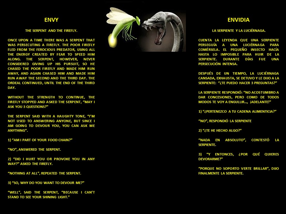 ENVY, THE SERPENT AND THE FIREFLY. ENVIDIA, LA SERPIENTE Y LA LUCIÉRNAGA