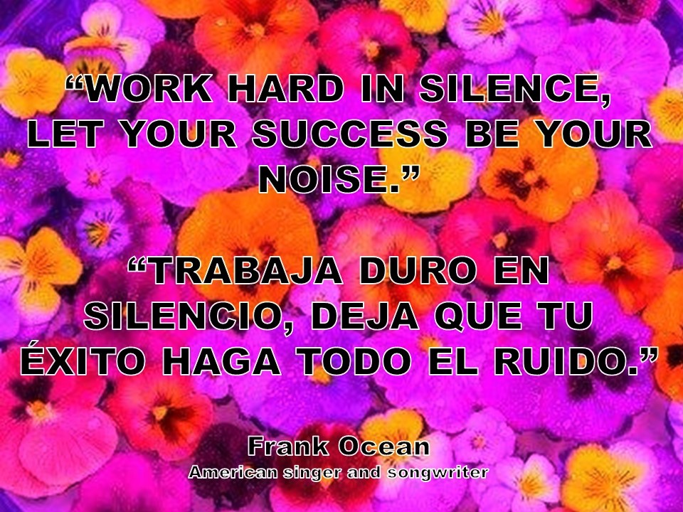 WORK HARD IN SILENCE, LET YOUR SUCCESS BE YOUR NOISE. TRABAJA DURO EN SILENCIO, DEJA QUE TU ÉXITO HAGA TODO EL RUIDO. Frank Ocean