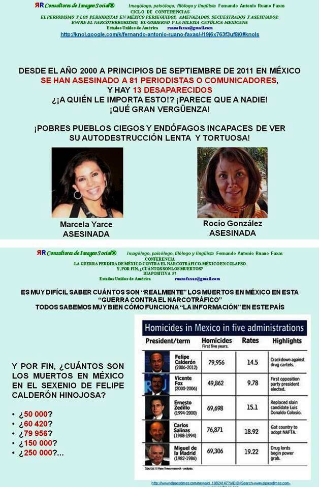 EL PERIODISMO Y LOS PERIODISTAS EN MÉXICO PERSEGUIDOS, AMENAZADOS, SECUESTRADOS Y ASESINADOS: ENTRE EL NARCOTERRORISMO, EL GOBIERNO Y LA IGLESIA CATÓLICA MEXICANA https://ruanofaxas.wordpress.com/article/el-periodismo-y-los-periodistas-en-19j6x763f3uf8-147-2/
