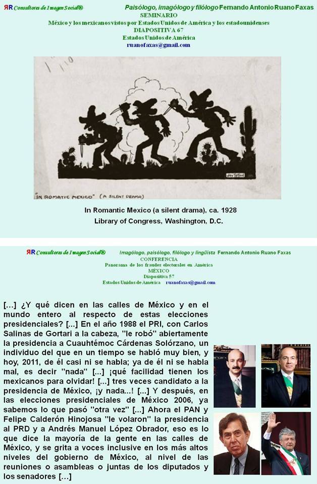 […] Libros como estos, excelentes libros por cierto, se quedaron cortos a la hora de reflejar la verdadera realidad de México y los mexicanos […] ¿Cada año entre 18,000 y 20,000 muertos en México a causa del narcotráfico, a causa de la guerra de las drogas, a causa de las guerras de las drogas? ¿Cada año 500 niños muertos a causa de las guerras en México? […] Cuando hablamos en nuestra conferencia “Ceguera Social en Plena Globalización” […] ahí hicimos muchas referencias a los “países-morgues”, “países-fosas comunes”, “países-funerarias”, “países-cementerios”, “países-narcofosas”, “países-holocaustos”, “países-barbaries”, “países-masacres”, “países-genocidios”, “países-infiernos”, “países-basuras” […] ¿Se puede decir la verdad en México? No, porque, por un lado, en México “no se puede decir la verdad”, y, por otro lado, a los mexicanos no les enseñan a decir la verdad […] ¿No recuerdan el libro Mito y magia del mexicano, de Jorge Carrión? […] los mexicanos, como una buena parte de esta América medio analfabeta, han vivido toda su vida entre los mitos, los mitoides, la micromanía y las cantinfladas […] Cantinflear, cantinfleo, cantinflada, es algo que he definido como el ESTADO DEL PAPALOTEO MENTAL, PAPALOTEAR MENTALMENTE […] En el lenguaje verbal y en el lenguaje corporal de los mexicanos, en general y en cualquier contexto, tal pareciera que por encima de la precisión siempre imperará la imprecisión: nunca un “el”, nunca un “la”, nunca un “los”, nunca un “ese”, nunca un “esa”, nunca un “esos”, y siempre un “un”, un “una”, un “unos”… Como decía Antaki (1996): siempre lo general y confuso: “flor y fruta”, nunca lo particular y claro: “jacaranda y ciruela”. ¿Y por qué siempre “lo general”? Muy sencillo, porque a los mexicanos no les enseñan “lo particular”. Les enseñan a dar rodeos para todo, y lo directo se ve como feo, como grosero, como no mexicano, aunque todos sabemos lo que hay verdaderamente detrás de todo esto: “las máscaras mexicanas que tanto daño le han hecho a México y a los mexicanos, y también, de paso, a los países extranjeros y a los extranjeros”: mentir y mentir y mentir […] ¿No recuerdan el libro El laberinto de la soledad, de Octavio Paz? […] ¿No recuerdan el libro El gesticulador, de Rodolfo Usigli? […] ¿No recuerdan el libro El pueblo que no quería crecer, de Ikram Antaki? […]