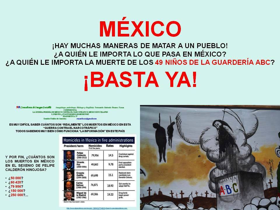 […] ¿Y realmente les importa a los 117 millones de mexicanos que viven dentro de México y a los 34 millones de mexicanos que viven aquí en Estados Unidos todas estas cosas atroces, aberrantes, demoníacas, asquerosas, que pasan en México, que pasan en México entre los mismos mexicanos y también con los extranjeros, como es el caso de los migrantes de otros países desaparecidos, secuestrados y asesinados ahí? ¿Y qué me dicen de los secuestros y asesinatos, crímenes, de periodistas en México? […] Por eso digo que México ya es como sombrero de mago, ahí todo desaparece, bueno, más bien en México “desaparece todo lo bueno”, porque las cosas malas en México perduran por la eternidad, ¡qué barbaridad! […] ¿Quiénes fueron los que pusieron en el poder a todos estos cerdos de políticos, corruptos, ladrones, asesinos, ignorantes, bestias, que tienen a México y a los mexicanos destruidos? Ahí están los resultados de las elecciones, el conteo de los votos, las urnas […] Dice Pedro Ultreras, director del documental ABC: Nunca más http://blogs.cnnmexico.com/aristegui/2013/06/06/el-documental-abc-nunca-mas/?utm_source=dlvr.it&utm_medium=twitter «[…] que no se quedara en el olvido, porque soy muy consciente que en este país tenemos una especie de memoria colectiva muy corta o a veces no tenemos memoria. Como ciudadanos lo olvidamos con frecuencia, y como gobierno, como estado, se les olvida más rápidamente […] apostarle al olvido no es la alternativa para quien está buscando la justicia, apostarle al olvido es lo que el gobierno estaba buscando […]» Como dice Elena Poniatowska: «no somos un país para nada compacto, somos un país de lo más disperso» […] como dijera José Vasconcelos: «Este pueblo mexicano no merece que yo sacrifique una sola hora de mi sueño. ¡Es un pueblo de traidores y de cobardes que no me merece! Demasiado he hecho por redimirlo. No volveré a ocuparme de él» […]