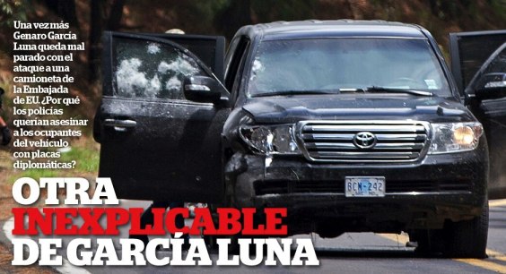 Otra inexplicable de García Luna. Una vez más Genaro García Luna queda mal parado con el ataque a una camioneta de la Embajada de EU. ¿Por qué los policías querían asesinar a los ocupantes del vehículo con placas diplomáticas? http://www.reporteindigo.com/reporte/mexico/otra-inexplicable-de-garcia-luna