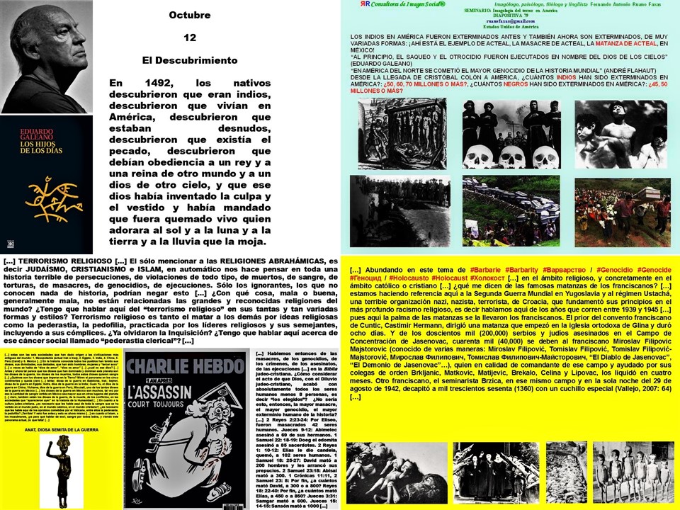 FERNANDO ANTONIO RUANO FAXAS.IMAGOLOGÍA,RELIGIÓN,RELIGIONES,DESCUBRIMIENTO,EXTERMINIO,MATANZA,HOLOCAUSTO,MASACRE,BARBARIE,MUERTOS,JUDAÍSMO,CRISTIANISMO,ISLAM,TERRORISMO