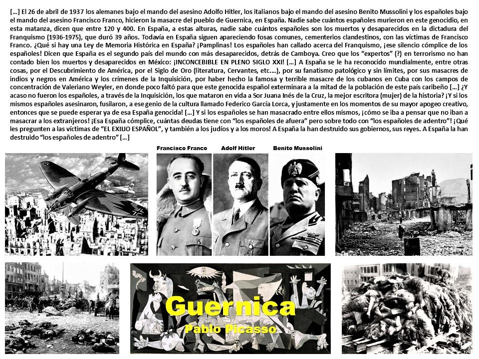 FERNANDO ANTONIO RUANO FAXAS.ESPAÑA,GUERNICA,PICASSO,HITLER,MUSSOLINI,FRANCISCO FRANCO,FRANQUISMO,GARCÍA LORCA,SOR JUANA INÉS DE LA CRUZ,INQUISICIÓN,CUBA,VALERIANO WEYLER,CAMPO DE CO