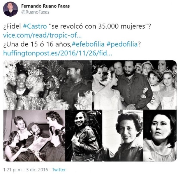 ¡ARRIBA EL SEXO CASTRISTA (LOS OTROS SEXOS NO), SOBRE TODO EL QUE HACÍA FIDEL CASTRO!: ¿Fidel Castro “se revolcó”, se acostó, tuvo sexo, “se templó”, “se singó”, “se chingó”, “se cogió”, fornicó, con 35.000 mujeres? ¿Una de esas mujeres tenía 15 ó 16 años, es decir Fidel Castro cometió el delito de #efebofilia, #pedofilia? “¡Eso dicen algunos periodistas, comentaristas e historiadores!” ¿Verdad o mentira? Bueno, tratándose de Cuba y los castristas, y durante 60 años de dictadura, “todo puede pasar”.