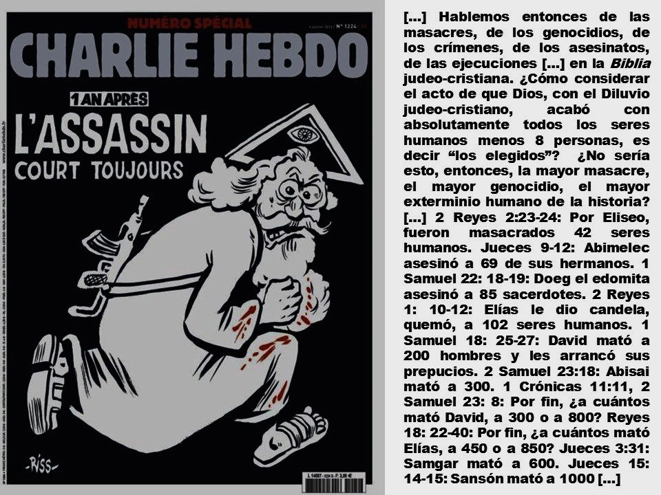 CHARLIE HEBDO, ШАРЛИ ЭБДО. DIOS, GOD, DEUS, БОГ. BIBLIA, BIBLE, БИБЛИЯ, BIBEL. TERRORISMO, TERRORISM, TERRORISME, ТЕРРОРИЗМ