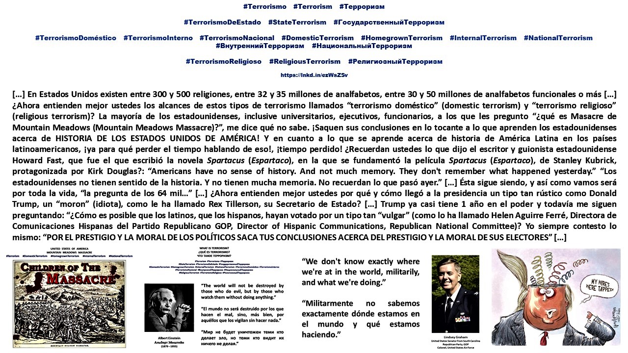 TERRORISMO DE ESTADO, DOMÉSTICO, INTERNO, NACIONAL, RELIGIOSO. RELIGIÓN, RELIGIONES, FANATISMO, ANALFABETISMO, CULTURA, EDUCACIÓN, POLÍTICOS, POLÍTICA, ELECCIONES, DONALD TRUMP, TER