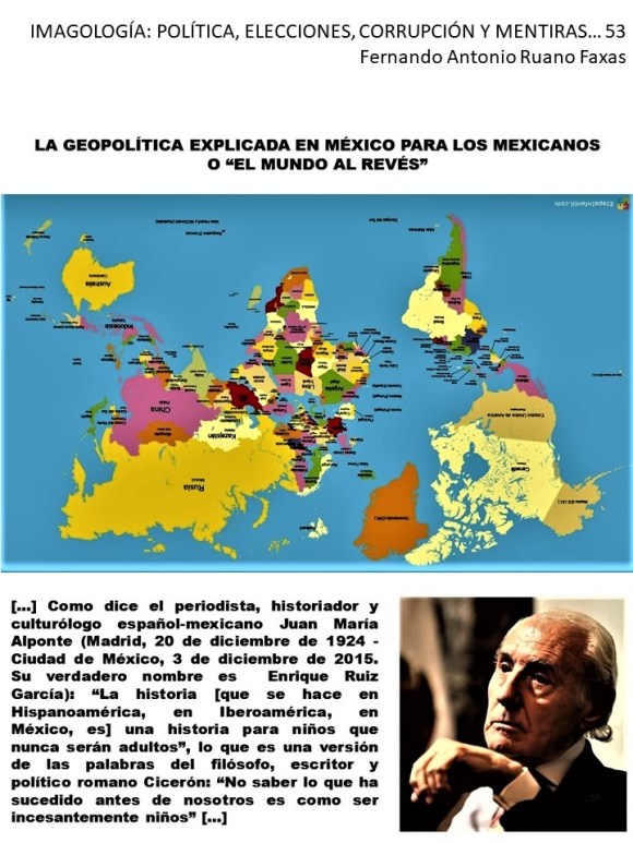 […] Como dice el periodista, historiador y culturólogo español-mexicano Juan María Alponte (Madrid, 20 de diciembre de 1924 – Ciudad de México, 3 de diciembre de 2015. Su verdadero nombre es Enrique Ruiz García): “La historia [que se hace en Hispanoamérica, en Iberoamérica, en México, es] una historia para niños que nunca serán adultos”, lo que es una versión de las palabras del filósofo, escritor y político romano Cicerón: “No saber lo que ha sucedido antes de nosotros es como ser incesantemente niños” […]
