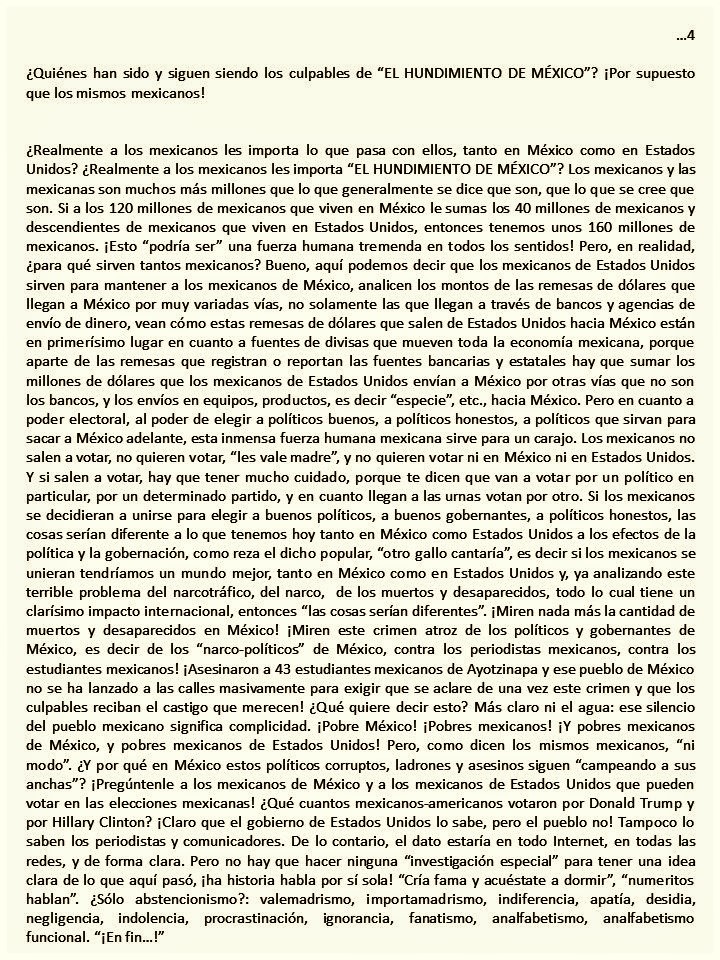 ← back to “¿Quiénes han sido y siguen siendo los culpables de “EL HUNDIMIENTO DE MÉXICO”? ¡Por supuesto que los mismos mexicanos! ¿Realmente a los mexicanos les importa lo que pasa con ellos, tanto en México como en Estados Unidos? ¿Realmente a los mexicanos les importa “EL HUNDIMIENTO DE MÉXICO”?”