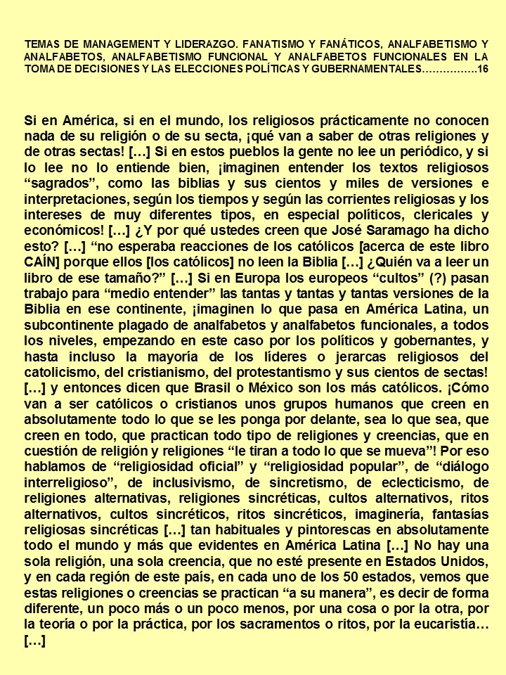 ← back to “TEMAS DE MANAGEMENT Y LIDERAZGO. FANATISMO Y FANÁTICOS, ANALFABETISMO Y ANALFABETOS, ANALFABETISMO FUNCIONAL Y ANALFABETOS FUNCIONALES EN LA TOMA DE DECISIONES Y LAS ELECCIONES POLÍTICAS Y GUBERNAMENTALES.”