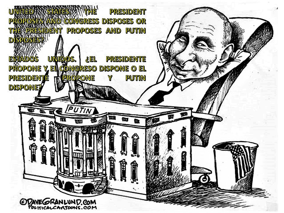 DONALD TRUMP.UNITED STATES,ESTADOS UNIDOS.THE PRESIDENT PROPOSES AND CONGRESS DISPOSES OR THE PRESIDENT PROPOSES AND PUTIN DISPOSES.EL PRESIDENTE PROPONE Y EL CONGRESO DISPONE O EL PRESI