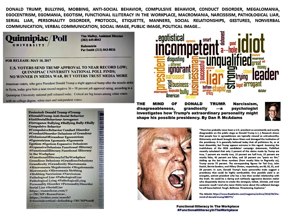 FERNANDO ANTONIO RUANO FAXAS.IMAGOLOGÍA.DONALD TRUMP,BULLYING,FUNCTIONAL ILLITERACY IN THE WORKPLACE,NARCISSISM,PATHOLOGICAL LIAR,PROTOCOL,ETIQUETTE,MANNERS,SOCIAL RELATIONSHIPS,GESTURE