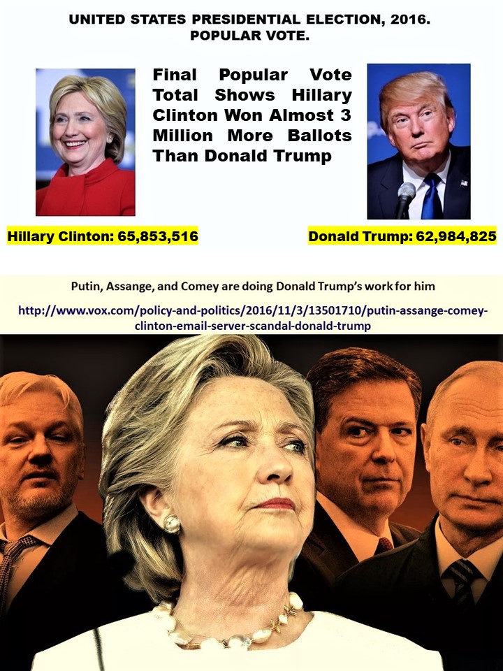 FERNANDO ANTONIO RUANO FAXAS.IMAGOLOGÍA,ELECCIONES,ELECTION.FINAL POPULAR VOTE TOTAL SHOWS HILLARY CLINTON WON ALMOST 3 MILLION MORE BALLOTS THAN DONALD TRUMP.RUSSIA,RUSIA,KREMLIN,VLADI