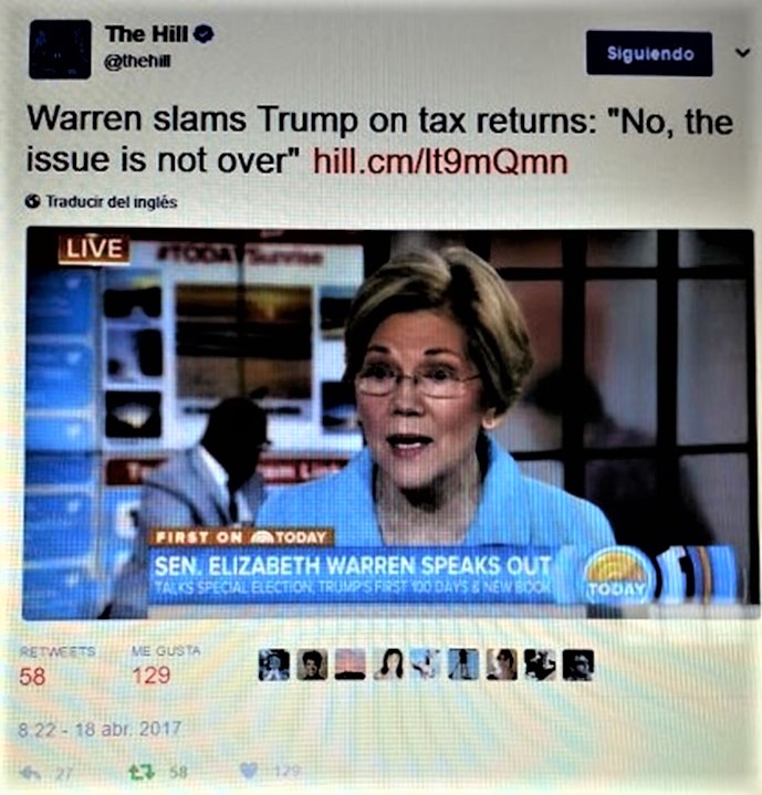 USA, US, EEUU, ELECTION, ELECCIONES, GOP, MAGA. ELIZABETH WARREN RIPS TRUMP OVER TAX RETURNS. THE ISSUE IS NOT OVER