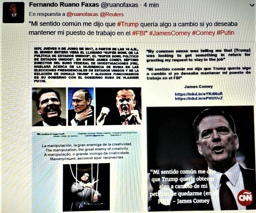 FERNANDO ANTONIO RUANO FAXAS.James Comey,FBI,Putin,Russia,Rusia.Mi sentido común me dijo que Trump quería algo a cambio si yo deseaba mantener mi puesto de trabajo en el FBI