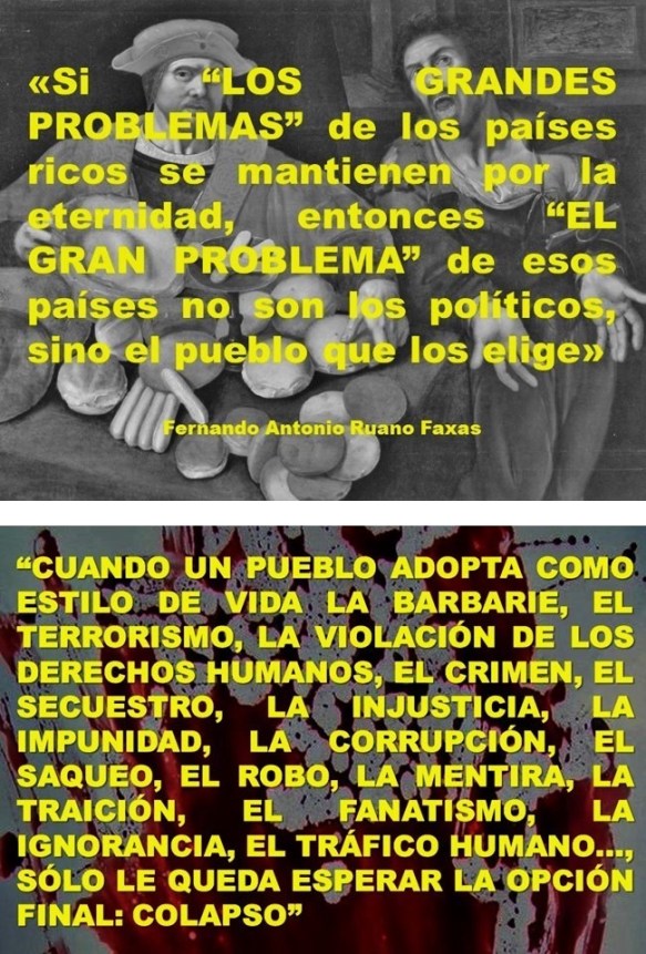 […] Toda América Latina ha sido un eterno genocidio. ¿Y qué país de América Latina no ha sido terrorista en “NUESTRA LARGA HISTORIA DE BARBARIE”? Y ya, a estas alturas de la barbarie en México, en vez de preguntar quiénes son los buenos y los malos, hay que preguntar quiénes son los menos malos y los más malos, porque con toda esta cantidad de muertos y desaparecidos que tiene este país, que se ha convertido en todo un cementerio clandestino, en una inmensa fosa común, los mexicanos siguen votando en sus elecciones presidenciales por políticos corruptos, delincuentes, narcotraficantes y asesinos. Entonces, un pueblo que hace esto, ¿no es cómplice también de la corrupción y la criminalidad? Creo que el ejemplo más claro de complicidad delincuencial de los mexicanos es el caso del Estado de México. ¡Qué cosa terrible no ha pasado en este estado de México, que tiene más de 16 millones de habitantes, y los mexiquenses llevan casi 90 años eligiendo a los priistas, al PRI, el partido político que los masacra y los tiene hundidos en la pobreza! ¡Ay, ese eterno masoquismo político de los mexicanos, esa eterna complicidad de los mexicanos, tanto de los mexicanos de México, es decir “los mexicanos de adentro”, como de los mexicanos de Estados Unidos, es decir “los mexicanos de afuera”! […] Cuando tengo que hablar de México, y viendo todo lo terrible que sigue pasando con los mexicanos, no puedo evitar recordar las duras palabras de José Vasconcelos: “Este pueblo mexicano no merece que yo sacrifique una sola hora de mi sueño. ¡Es un pueblo de traidores y de cobardes que no me merece! Demasiado he hecho por redimirlo. No volveré a ocuparme de él” […] ¡Y si lo ha dicho “el tan amado José Vasconcelos”, quién lo va a poner en dudas! A fin de cuentas, José Vasconcelos es un dios para los mexicanos, entonces ¡ni dudarlo!, “¡palabras santas!” […]