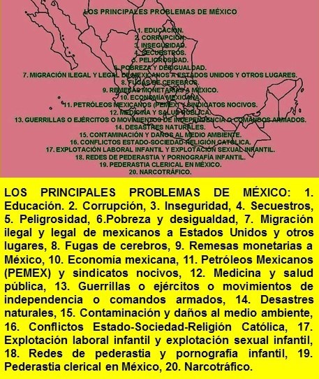 ← back to “Divagaciones acerca de los hispanos o latinos…27 […] Toda América Latina ha sido un eterno genocidio. ¿Y qué país de América Latina no ha sido terrorista en “NUESTRA LARGA HISTORIA DE BARBARIE”? Y ya, a estas alturas de la barbarie en México, en vez de preguntar quiénes son los buenos y los malos, hay que preguntar quiénes son los menos malos y los más malos, porque con toda esta cantidad de muertos y desaparecidos que tiene este país, que se ha convertido en todo un cementerio clandestino, en una inmensa fosa común, los mexicanos siguen votando en sus elecciones presidenciales por políticos corruptos, delincuentes, narcotraficantes y asesinos. Entonces, un pueblo que hace esto, ¿no es cómplice también de la corrupción y la criminalidad? Creo que el ejemplo más claro de complicidad delincuencial de los mexicanos es el caso del Estado de México. ¡Qué cosa terrible no ha pasado en este estado de México, que tiene más de 16 millones de habitantes, y los mexiquenses llevan casi 90 años eligiendo a los priistas, al PRI, el partido político que los masacra y los tiene hundidos en la pobreza! ¡Ay, ese eterno masoquismo político de los mexicanos, esa eterna complicidad de los mexicanos, tanto de los mexicanos de México, es decir “los mexicanos de adentro”, como de los mexicanos de Estados Unidos, es decir “los mexicanos de afuera”! […] Cuando tengo que hablar de México, y viendo todo lo terrible que sigue pasando con los mexicanos, no puedo evitar recordar las duras palabras de José Vasconcelos: “Este pueblo mexicano no merece que yo sacrifique una sola hora de mi sueño. ¡Es un pueblo de traidores y de cobardes que no me merece! Demasiado he hecho por redimirlo. No volveré a ocuparme de él” […] ¡Y si lo ha dicho “el tan amado José Vasconcelos”, quién lo va a poner en dudas! A fin de cuentas, José Vasconcelos es un dios para los mexicanos, entonces ¡ni dudarlo!, “¡palabras santas!” […]”