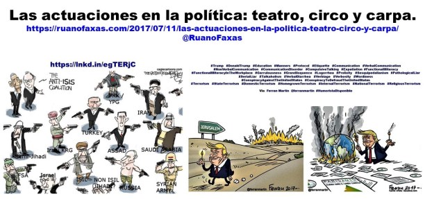 En cuanto a la política como circo, pues aquí tenemos a los países pseudo-civilizados, que, según ellos, pertenecen al PRIMER MUNDO, pero en donde con frecuencia aparecen “tremendos escándalos” entre los políticos que son más propios de actuaciones de payasos que de actores, y los ejemplos son muchos, ahí tenemos a los países llamados “PIGS” en Europa: Portugal, Italia, Grecia y España (Spain). ¡A estas alturas, qué decir ya de España y los españoles que no se ha haya dicho! EL GRAN Y VIEJO PROBLEMA DE ESPAÑA NO ES NI LA IZQUIERDA NI LA DERECHA, SINO TODOS LOS POLÍTICOS DE ESPAÑA JUNTOS Y ESA ZÁNGANA MONARQUÍA CUATRERA […] De cuál España quieren ustedes que les hable, de la verdadera y real España o de la España que se han inventado algunos españoles […] https://lnkd.in/eW7FbuY , lnkd.in/eRDQrii