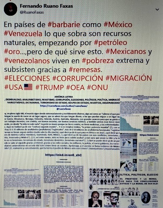 FERNANDO ANTONIO RUANO FAXAS. IMAGOLOGÍA, ELECCIONES, CORRUPCIÓN, POLÍTICA, ECONOMÍA, NEGOCIOS, AMÉRICA, PETRÓLEO, ORO, MÉXICO, VENEZUELA, POBREZA, MISERIA, MIGRACIÓN, REMESAS