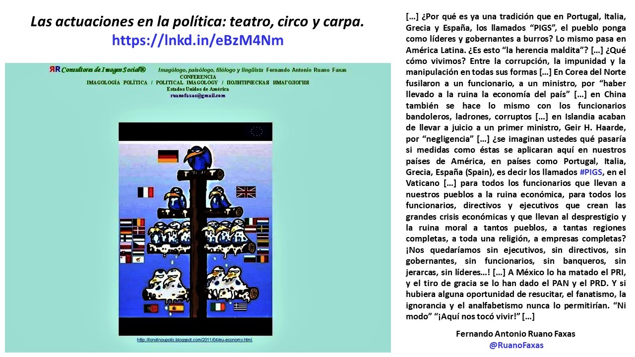 FERNANDO ANTONIO RUANO FAXAS. IMAGOLOGÍA, LAS ACTUACIONES EN LA POLÍTICA, TEATRO, CIRCO Y CARPA. ELECCIONES, POLÍTICA, MÉXICO, ESPAÑA, VATICANO, CORRUPCIÓN, MIGRACIÓN, MIGRANTES,