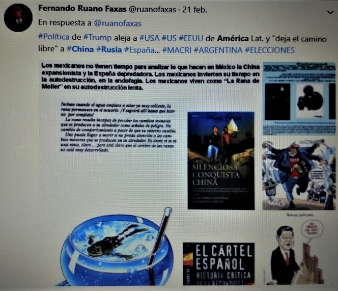← back to “[…] Si Putin y los rusos “se metieron hasta la cocina” en Estados Unidos, ¡a quién le va a importar ya que estén ocupando poco a poco América Latina: Cuba, Venezuela, Nicaragua, Bolivia, Ecuador… […] Las armas que aparecen en Latinoamérica, incluyendo las de los narcos, no solamente vienen de Estados Unidos. Hasta un ciego puede ver lo que está pasando […] Y mientras Trump desvía la atención de los políticos estadounidenses de América Latina para que se enfoquen en el desastre de las elecciones presidenciales de USA, entonces China y Rusia aprovechan para aumentar su presencia en la región […] Por eso decimos: UNITED STATES. THE PRESIDENT PROPOSES AND CONGRESS DISPOSES OR THE PRESIDENT PROPOSES AND PUTIN DISPOSES? ESTADOS UNIDOS. ¿EL PRESIDENTE PROPONE Y EL CONGRESO DISPONE O EL PRESIDENTE PROPONE Y PUTIN DISPONE? […]”