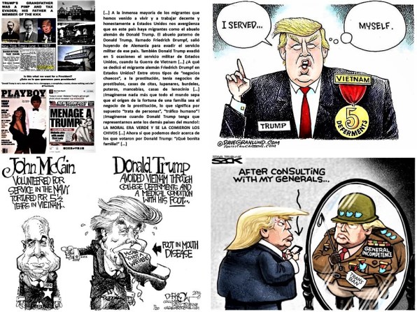 […] A la inmensa mayoría de los migrantes que hemos venido a vivir y a trabajar decente y honestamente a Estados Unidos nos avergüenza que en este país haya migrantes como el abuelo alemán de Donald Trump. El abuelo paterno de Donald Trump, llamado Friedrich Drumpf, salió huyendo de Alemania para evadir el servicio militar de ese país. También Donald Trump evadió en 5 ocasiones el servicio militar de Estados Unidos, cuando la Guerra de Vietnam […] ¿A qué se dedicó el migrante alemán Friedrich Drumpf en Estados Unidos? Entre otros tipos de “negocios chuecos”, a la prostitución, tenía negocios de prostíbulos, casas de citas, lupanares, burdeles, puteros, mancebías, casas de lenocinio […] ¡Imagínense nada más que todo el mundo sepa que el origen de la fortuna de una familia sea el negocio de la prostitución, lo que significa por supuesto “trata de personas”, “tráfico humano”! ¡Imagínense cuando Donald Trump tenga que representarnos ante los demás países del mundo!: LA MORAL ERA VERDE Y SE LA COMIERON LOS CHIVOS […] Ahora sí que podemos decir acerca de los que votaron por Donald Trump: “¡Qué bonita familia!” […]