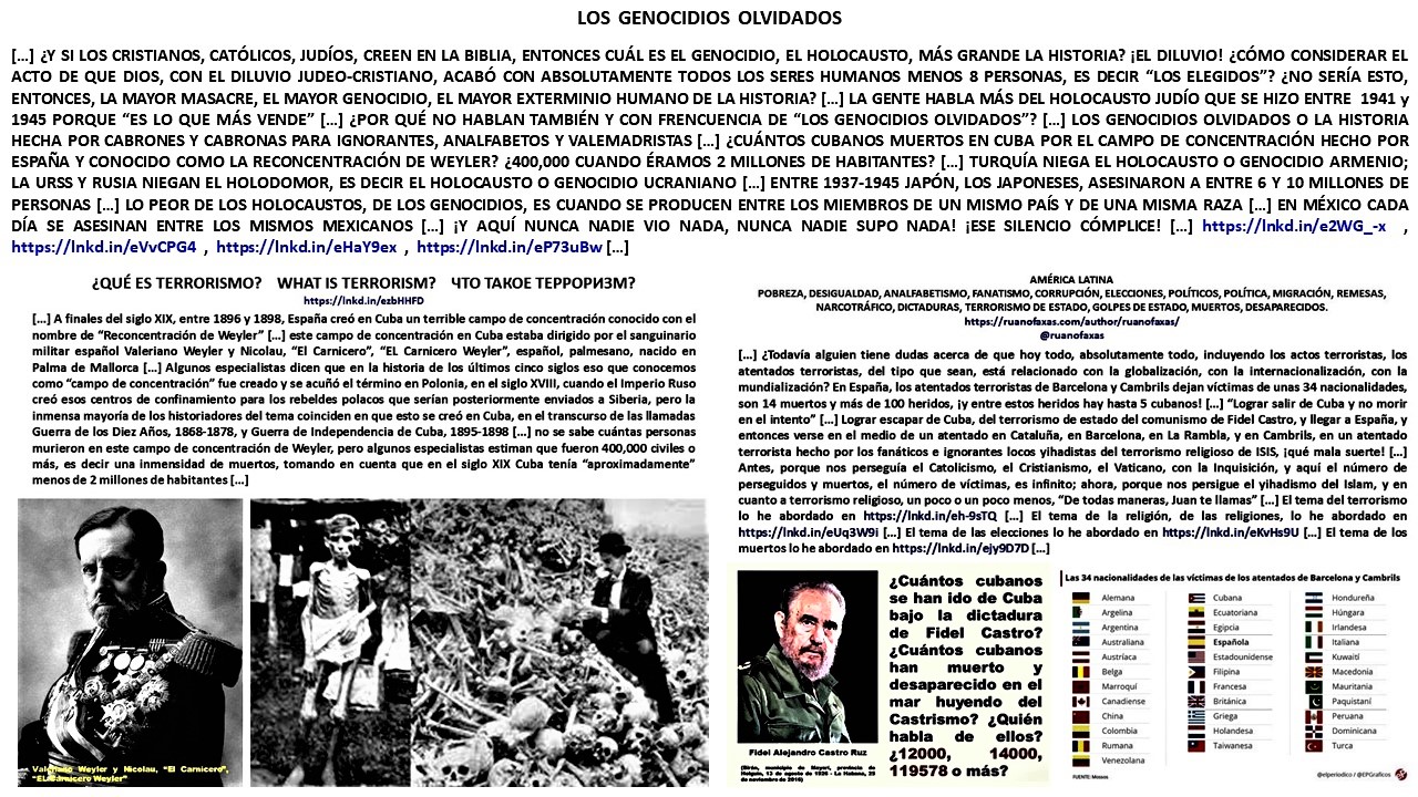 FERNANDO ANTONIO RUANO FAXAS. LOS GENOCIDIOS OLVIDADOS. CUBA, CUBANOS, MUERTOS, DESAPARECIDOS. GENOCIDIO, GENOCIDE, ГЕНОЦИД. HOLOCAUSTO, HOLOCAUST, ХОЛОКОСТ