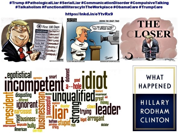 #Trump #PathologicalLiar #SerialLiar #CommunicationDisorder #CompulsiveTalking #Talkaholism #FunctionalIlliteracyInTheWorkplace #Obamacare #TrumpCare