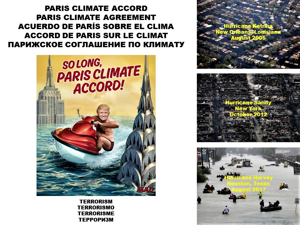 DONALD TRUMP,GOP,TERRORISM,TERRORISMO,PARIS CLIMATE ACCORD,PARIS CLIMATE AGREEMENT,HURRICANE,KATRINA,NEW ORLEANS,LOUISIANA,SANDY,NEW YORK,NEW JERSEY, HARVEY,HOUSTON,TEXAS