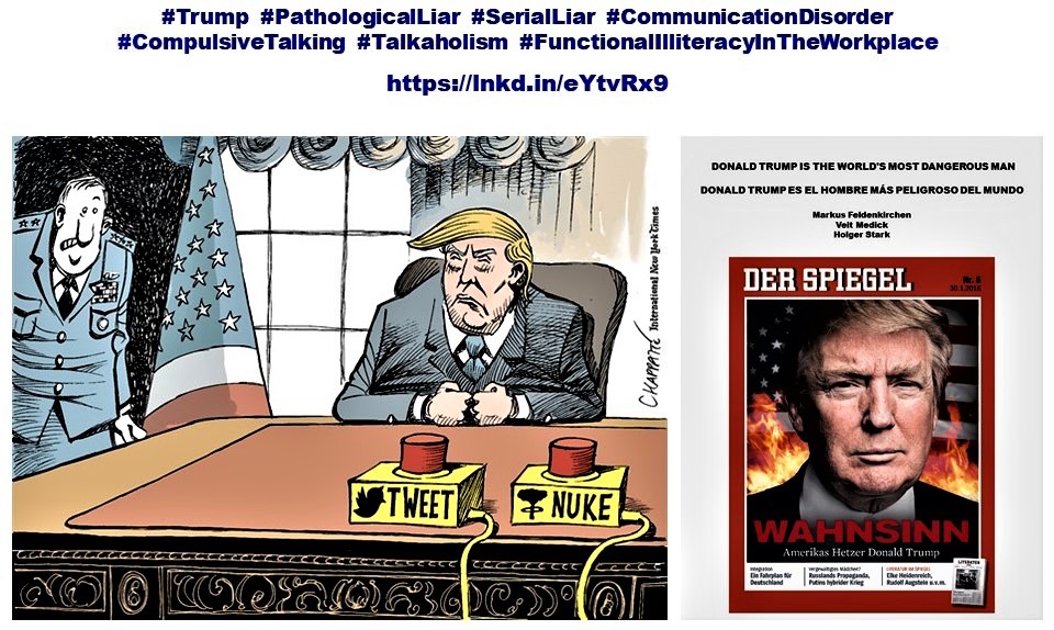 TRUMP,PATHOLOGICAL LIAR,SERIAL LIAR,COMMUNICATION DISORDER,COMPULSIVE TALKING,TALKAHOLISM,TWITTER,FUNCTIONAL ILLITERACY IN THE WORKPLACE,TWITTER,INTERNET,TERRORISM