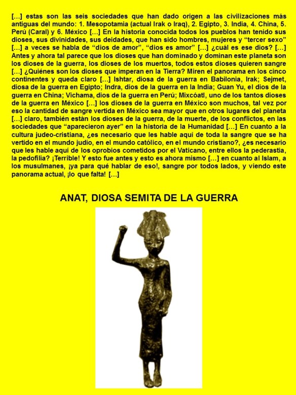 […] Y esta constante y liderante presencia religiosa polimórfica, a veces tan sutilmente perversa, por lo que hemos visto, está marcada mayoritariamente por la crueldad y el odio. En la historia de la humanidad, en la historia de las grandes culturas, no ha habido conflicto trascendental en el que no estén presentes las creencias religiosas, las religiones, a través de “los actores” y también a través de “los cómplices”. En la historia de este planeta, lo analices por donde lo analices, la principal causa del TERRORISMO, en mayor o menor medida, abiertamente o enmascaradamente, han sido las religiones, las religiones siempre han estado detrás (y también delante) de absolutamente todo, empleando todo tipo de tácticas y estrategias manipulatorias que son más eficaces en la medida en que los destinatarios sean más ignorantes y más fanáticos. Acerca de esto he hablado en otros muchos momentos, como por ejemplo en mi texto IMAGOLOGÍA DEL ARTE COSMOGÓNICO DE LAS SEIS SOCIEDADES QUE HAN DADO ORIGEN A LAS CIVILIZACIONES MÁS ANTIGUAS DEL MUNDO: 1. MESOPOTAMIA (ACTUAL IRAQ O IRAK), 2. EGIPTO, 3. INDIA, 4. CHINA, 5. PERÚ (CARAL) Y 6. MÉXICO […] ¿Tienen alguna duda acerca de las masacres que se han hecho en nombre de un dios, de unos dioses, de una diosa, de unas diosas, de las tantas y tan variadas vírgenes, en fin en nombre de las religiones? Miren todos esos países “tan devotamente religiosos”, tan creyente en dios, ¡y peor no les puede ir!, ¡masacres tras masacres!, ¡llevan toda una vida en eso! Como decía el escritor inglés Daniel Defoe: “Allí donde Dios erige una iglesia, el demonio siempre levanta una capilla; y si vas a ver, encontrarás que en la segunda hay más fieles” […] Aquí van los datos de las masacres, de los genocidios, de los holocaustos más importantes que en nombre de las religiones y los dioses se han producido en la historia de la humanidad […] Todavía sigo teniendo mis dudas acerca de qué cosa ha sido más cruel y terrorífica, si las masacres que ha hecho el cristianismo, el catolicismo, a través de la historia en nombre de dios, como ha sido y sigue siendo, por ejemplo, la Inquisición, como fueron las Cruzadas, o las cosas terribles que curas, sacerdotes y monjas han hecho a los niños y a las niñas a través de siglos de abusos a menores, de pederastia clerical, de pedofilia clerical […] Como decía Gabriela Mistral: “Nosotros somos culpables de muchos errores y muchas faltas, pero nuestro peor crimen es el abandono de los niños negándoles la fuente de la vida.” […] asunto analizado en mi texto “Niños robados por el franquismo, Lost children of Francoism, Meninos roubados pelo franquismo, Affaire des enfants volés du franquisme, Украденные дети в годы франкизма. ¡Esa España cómplice, cuántas deudas tiene con “los españoles de afuera” pero sobre todo con “los españoles de adentro”! LOS NIÑOS ROBADOS POR CURAS Y MONJAS EN EL FRANQUISMO. #España #Spain #Испания Imagen Política #ImagenPolítica Political Image #PoliticalImage Политический Имидж #ПолитическийИмидж Imagología Política #ImagologíaPolítica Political Imagology #PoliticalImagology Политическая Имагология #ПолитическаяИмагология […] #ImagologíaClerical #ClericalImagology #КлерикальнаяИмагология” he comentado esto en detalles […] Ahora, que si yo tengo que darte aquí la información, los datos, acerca de las atrocidades y matanzas que se han hecho en nombre de las religiones y los dioses, entonces lo que me llama la atención en estos momentos es tu formación cultural integral. ¿Qué se supone que aprendiste en esas escuelas en las que estudiaste? ¿Qué estudiaste? ¿Qué programas de estudio tienen en esos países en donde ustedes estudiaron que no incluyen los datos históricos elementales de la historia de la humanidad y en especial la historia de sus países, de sus regiones, la historia de las conquistas y las colonizaciones? ¿Qué papel desempeñaron tus padres y tu familia en tu formación integral? ¿Qué profesores fueron los que te formaron, fueron esos maestros del tipo de los que hablaba el genial José Joaquín Fernández de Lizardi: “El maestro Quiñones, que no sabía leer y daba lecciones” y “El maestro Ciruela, que no sabía leer y puso escuela”? Ok, “supongamos” que de niño estudiaste en “escuelas patitos”, ¿y ya de grande para qué utilizas Internet, sólo para el chacoteo? ¿Todavía no sabes que puedes emplear Internet para “rectificar” tu educación defectuosa? […] Si yo tengo que “informarte” aquí acerca de las masacres que en nombre de las religiones y los dioses se han hecho y se siguen haciendo en todo el mundo, entonces estamos en un problema todavía mayor que el que imaginamos. ¡Y después ciertos políticos, ciertos gobernantes, dicen que Roger Bartra está equivocado!: “Necesitamos alfabetizar a los políticos. La élite política mexicana es incoherente y analfabeta en su conjunto; eso realmente es una tragedia […] En México tenemos dirigentes que si bien nos va entienden lo que pasa en su municipio, en su estado; en el mejor de los casos uno que otro en el país; y en el mundo, muy pocos” […] Y ésta es la constante en toda América Latina, salvo las pocas y conocidas excepciones, y en general es la constante en el mundo entero. ¿No te has preguntado todavía por qué hoy entre las 100 mejores universidades del mundo no hay ninguna de países como España, Portugal, Italia, Grecia, México, Brasil, Argentina, Chile, Perú…? ¿Por qué Rusia y China son países que sí aparecen en la lista de las 200 mejores universidades del mundo? ¿Por qué la Universidad de São Paulo, Brasil, sí aparece entre las 200 mejores universidades del mundo, y ahí no están ni España ni México? En el Ránking de Shanghái, po