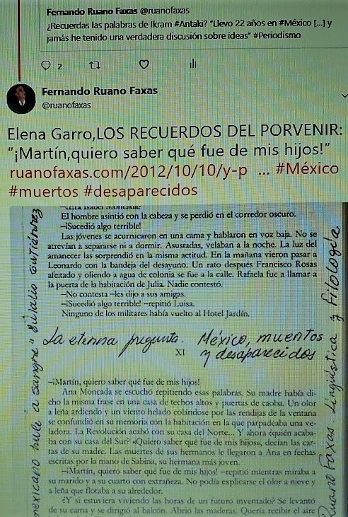 FERNANDO ANTONIO RUANO FAXAS.IMAGOLOGÍA,LITERATURA,PERIODISMO.MÉXICO,ELENA GARRO,LOS RECUERDOS DEL PORVENIR,REALISMO MÁGICO,IKRAM ANTAKI,AYOTZINAPA,MUERTOS,DESAPARECIDOS,CANTINFLEAR