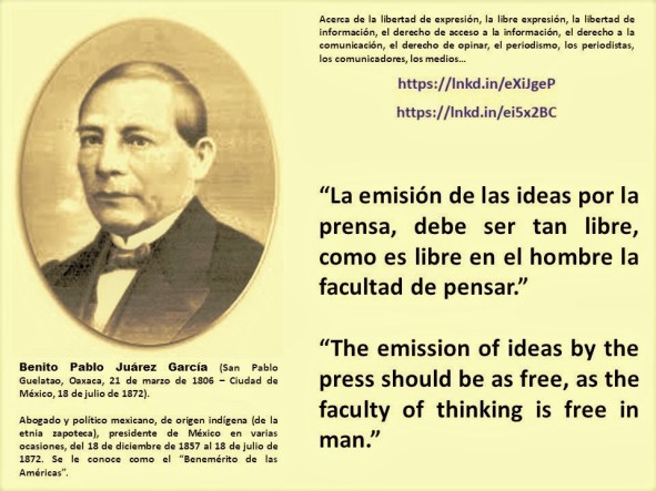 Hace más de un siglo que Benito Juárez dijo esto: “La emisión de las ideas por la prensa, debe ser tan libre, como es libre en el hombre la facultad de pensar.”