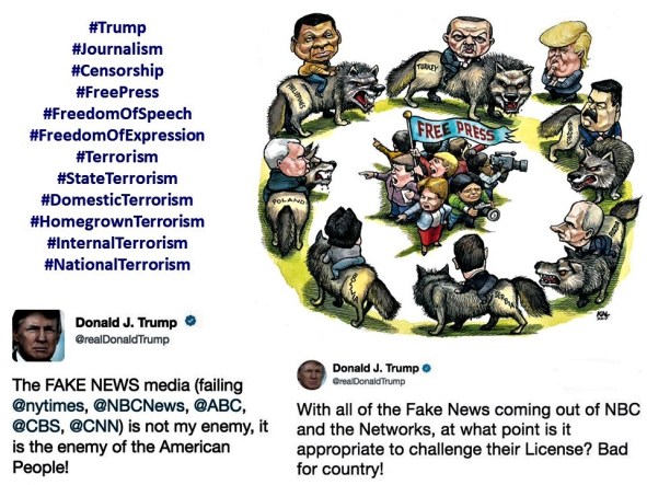 Y hoy, en Estados Unidos, el país que presume ser el líder de la libertad de prensa, de la libertad de opinión, de los derechos, vemos que su presidente, Donald Trump, quiere imponer censura a los medios, al periodismo, a los periodistas. ¡Qué vergüenza que esto pase en la PRIMER POTENCIA DEL MUNDO!