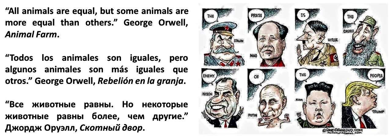 George Orwell. Animal Farm. All animals are equal, but some animals are more equal than others. Journalism, Periodismo, Trump, Putin, Castro…