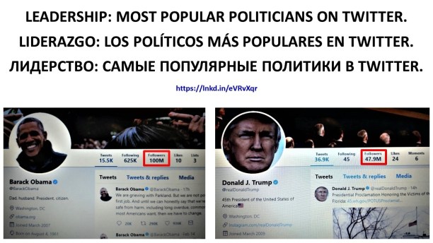 #LEADERSHIP: MOST POPULAR POLITICIANS ON #TWITTER#LIDERAZGO: LOS POLÍTICOS MÁS POPULARES EN TWITTER#ЛИДЕРСТВО: САМЫЕ ПОПУЛЯРНЫЕ ПОЛИТИКИ В TWITTER#USA #Election #Elecciones #Выборы#Management #Менеджмент#Obama #Обама#Trump #Трамп#GOP #MAGA #Florida #Parkland #GunReformNow pic.twitter.com/6MPSXMbKfz