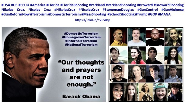 "Our prayers are not enough" "Nuestras oraciones no son suficientes" #Obama pic.twitter.com/nC9pcKmEGB— Fernando Ruano Faxas (@RuanoFaxas) February 15, 2018