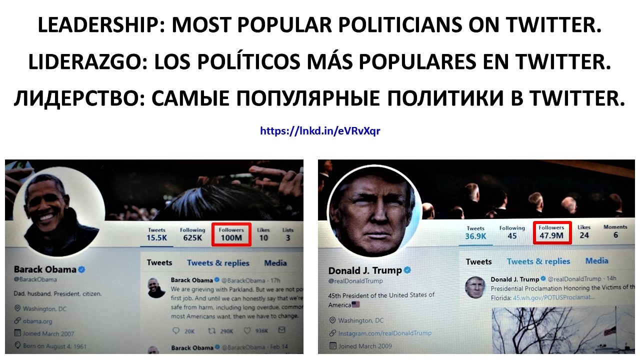 FERNANDO ANTONIO RUANO FAXAS. IMAGOLOGÍA, MANAGEMENT, LEADERSHIP, LIDERAZGO, MOST POPULAR POLITICIANS ON TWITTER, BARACK OBAMA, DONALD TRUMP