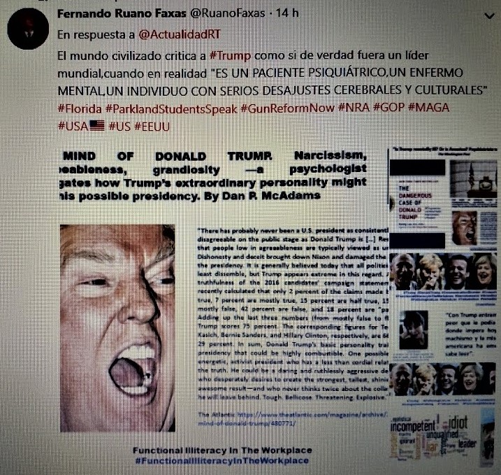 FERNANDO ANTONIO RUANO FAXAS, FLORIDA, PARKLAND, TRUMP, MUELLER, PUTIN, RUSSIA, RUSIA, TERRORISM, TERRORISMO, NRA, GOP, MAGA, MENTAL DISORDER, MENTAL ILLNESS, PSYCHIATRIC DISORDER..