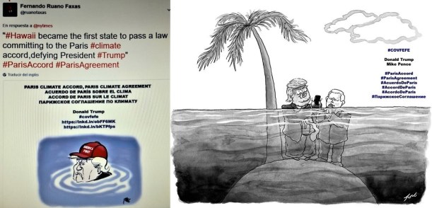 “Donald Trump ha decidido que sea Estados Unidos el único país del mundo que rechaza el Acuerdo de París sobre el cambio climático, primer pacto mundial para reducir las emisiones de gases de efecto invernadero, que hacen que aumente la temperatura global. Y en cuanto Estados Unidos se retiró de este acuerdo, inmediatamente los únicos dos países que no habían firmado este Pacto lo firmaron, es decir Nicaragua y Siria” […] Pero sabemos que en Estados Unidos existen las leyes, es decir que ésta no es una decisión única, exclusiva, de Donald Trump, sino que para que esta decisión de retirarse del Acuerdo de París se hiciera efectiva tuvo que haber una aceptación mayoritaria por parte de los políticos estadounidenses […] es decir que aquí podemos asegurar entonces que los políticos de Estados Unidos están contribuyendo a la destrucción del planeta: ¿y entonces acaso no es esto TERRORISMO INTERNACIONAL? […] Respecto de las decisiones que toma Donald Trump, ¿qué podemos esperar del presidente de nada más y nada menos que la llamada PRIMER POTENCIA DEL MUNDO, es decir Estados Unidos de América? […] Si el mismo Secretario de Estado de los Estados Unidos, Rex Tillerson, miembro del gabinete presidencial, ha llamado a Trump “moron” (imbécil, tonto, necio, tarado, retrasado mental, subnormal…), ¡imaginen lo que le dirán los demás! Si la escritora de lengua española más famosa en la actualidad, Isabel Allende, dice “Trump no sabe leer”, ¡imaginen las palabras que utilizará el pueblo para llamar a Trump! […] “Desde que el psicólogo John Gartner publicó un documento en Facebook declarando que Donald Trump debe ser destituido porque tiene ‘una enfermedad mental grave que lo incapacita psicológicamente para desempeñar competentemente los deberes como presidente de los Estados Unidos’, más de 18,000 psicólogos, psiquiatras y otros profesionales de la salud mental han firmado este documento” […] ¿Ahora entienden ustedes por qué Donald Trump ha dicho que el calentamiento global, que el cambio climático, es un “cuento chino”?: “El concepto de calentamiento global fue inventado por los chinos para lograr que la industria norteamericana dejara de ser competitiva” […] ¡Inconcebible que haya todavía personas que se atrevan a proponer a Donald Trump para un Premio Nobel de la Paz!, pero así es. Tal vez la explicación inmediata para esto esté en el hecho de que en Estados Unidos hay 93 millones de adultos con algún tipo de analfabetismo (yo creo que son muchos más), y algunos especialistas dicen que unos 50 millones de estadounidenses mayores de edad tienen analfabetismo funcional y 43 millones tienen analfabetismo […] ¿Que qué va a pasar en Estados Unidos y en el mundo con Donald Trump? ¡Quién sabe a estas alturas hasta dónde llegará el daño!, pero, por el momento, para mí nunca han estado más presentes y más claras las palabras de Howard Fast, que fue el que escribió la novela Spartacus (Espartaco), en la que se fundamentó la película Spartacus (Espartaco), de Stanley Kubrick, protagonizada por Kirk Douglas: “Americans have no sense of history. And not much memory. They don’t remember what happened yesterday.” “Los estadounidenses no tienen sentido de la historia. Y no tienen mucha memoria. No recuerdan lo que pasó ayer.” […] Ésta sigue siendo, y así como vamos será por toda la vida, “la pregunta de los 64 mil…” […]