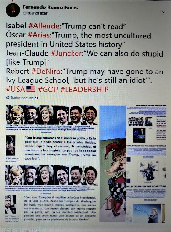 Óscar #Arias:“Trump, the most uncultured president in United States history"