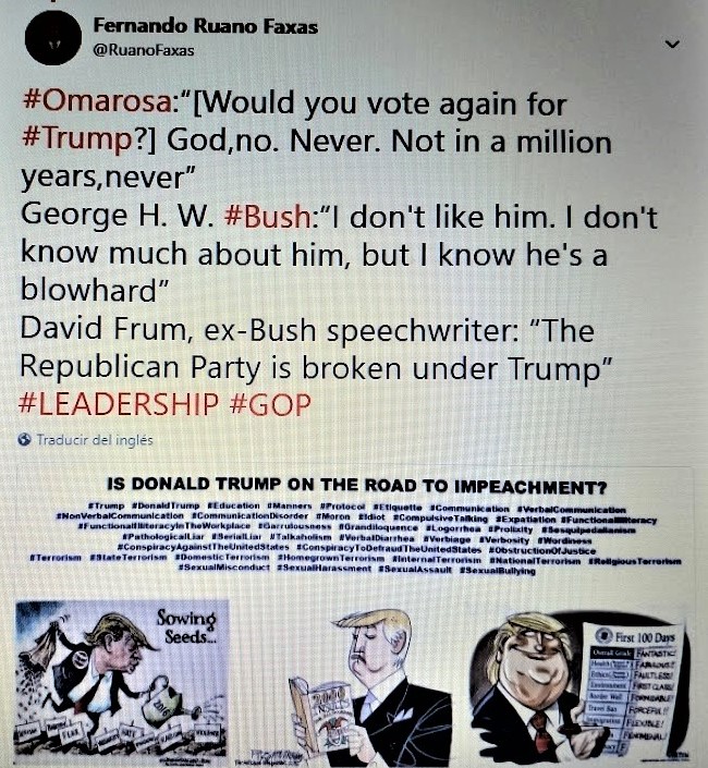 FERNANDO ANTONIO RUANO FAXAS. IMAGOLOGÍA. TRUMP, RACISM, BULLYING, FUNCTIONAL ILLITERACY IN THE WORKPLACE, ANALFABETISMO FUNCIONAL. OMAROSA, GEORGE H. W. BUSH, DAVID FRUM