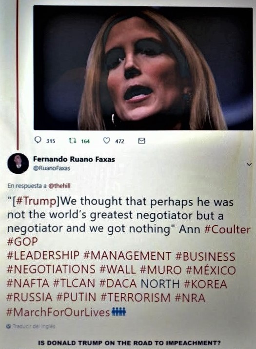 FERNANDO ANTONIO RUANO FAXAS. TRUMP, WE THOUGHT THAT PERHAPS HE WAS NOT THE WORLD_S GREATEST NEGOTIATOR BUT A NEGOTIATOR AND WE GOT NOTHING, ANN COULTER, LEADERSHIP, MANAGEMENT, RUSSIA